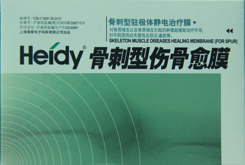 駐極體傷骨愈膜由上海交通大學研制,可有效糾正傷痛或病變部位的駐極態失衡,恢復人體組織的正常駐極態,從而消除或緩解病痛。其制造技術和工藝居國際領先地位,是對創傷醫學的一大貢獻。